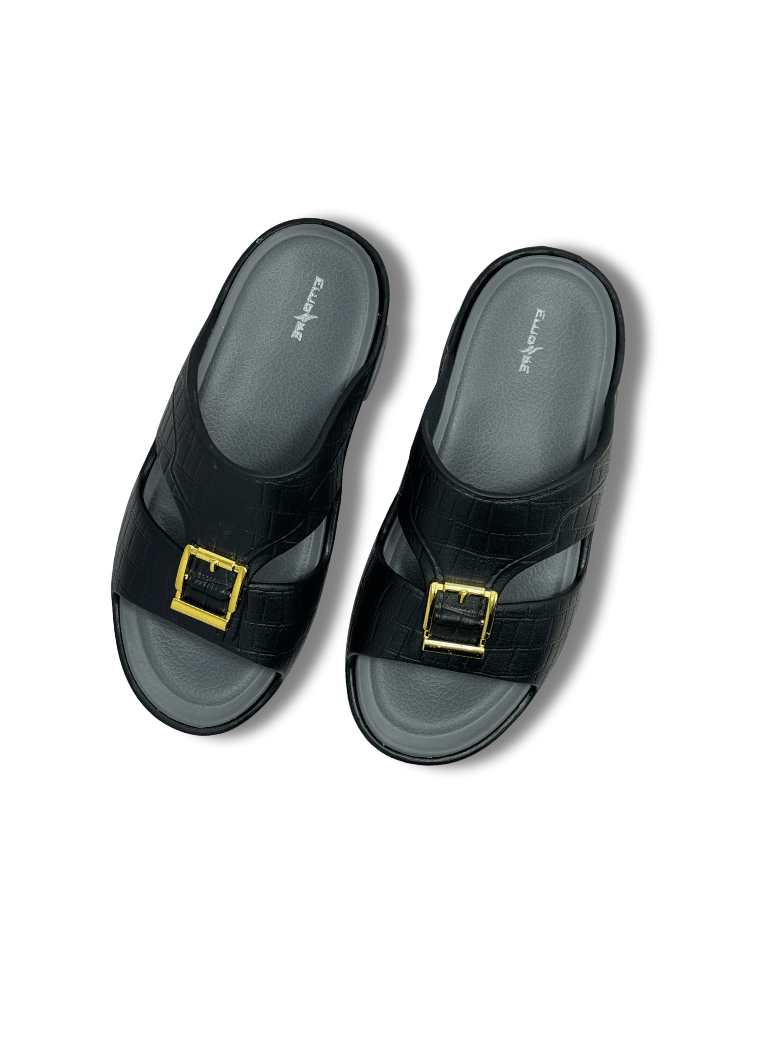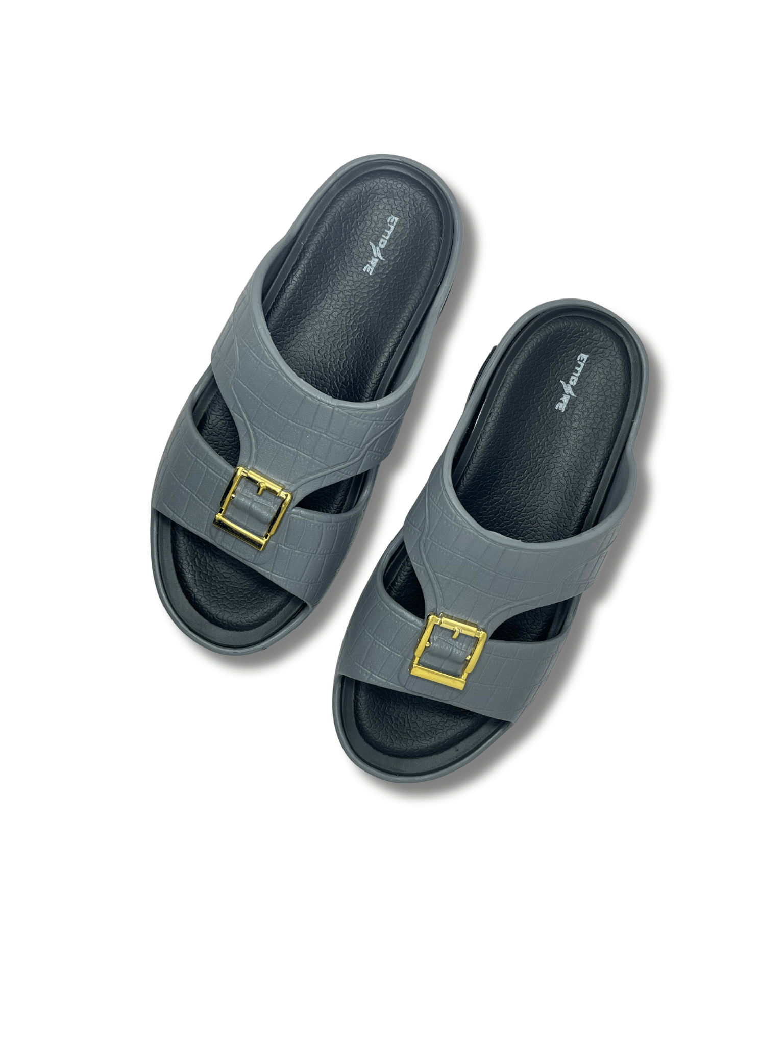 The Dinesty Slides bring a blend of premium style and practical comfort. Featuring a two-tone design with a medicated-style sole for better grip and foot support, these slides are perfect for daily wear. The textured upper is complemented by a bold gold-tone buckle, adding a refined, standout detail to their durable construction.